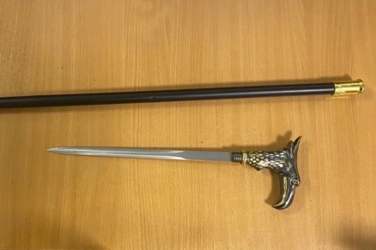 Проходя через пропускной пункт, мужчина заверил судебного пристава, что при нем нет запрещенных предметов. Но при осмотре с помощью металлодетектора в трости обнаружился встроенный клинок длиной около 30 сантиметров.